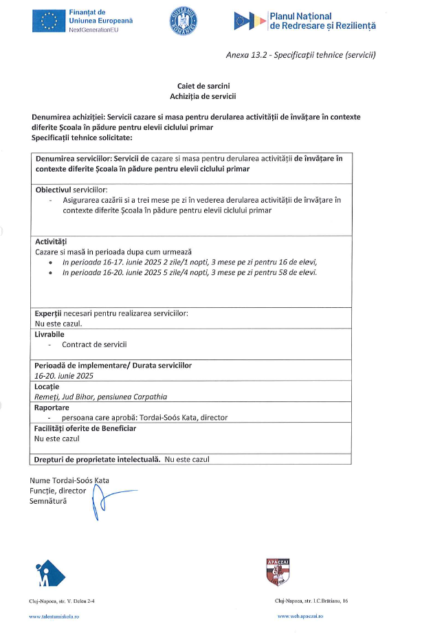 Caiet de sarcini Achiziția de servicii cazare și masă elevi primar_proiect PPEE